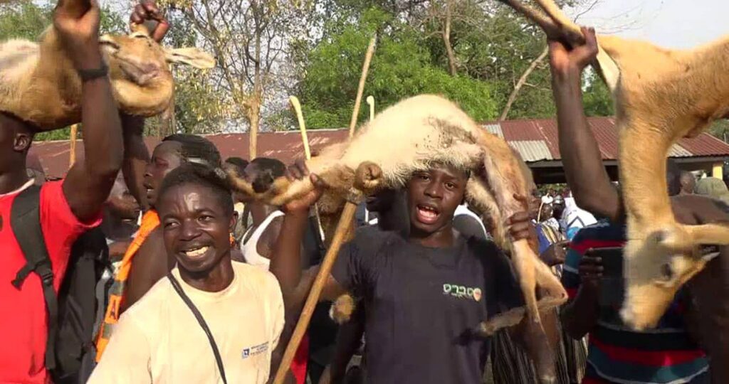 Les chasseurs venus de différentes localités de la préfecture de la Kozah, munis d’outils traditionnels, ont exhibé les produits de chasse dans une ambiance rythmée de chants et de danse.